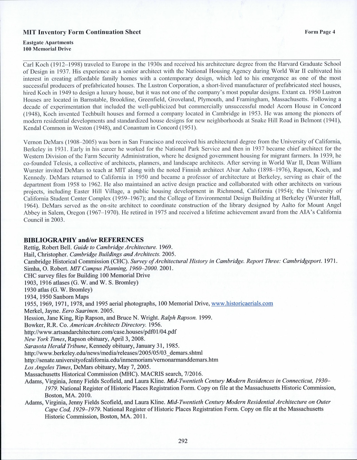 - Cambridge Historical Commission, Digital Architectural Survey and History.