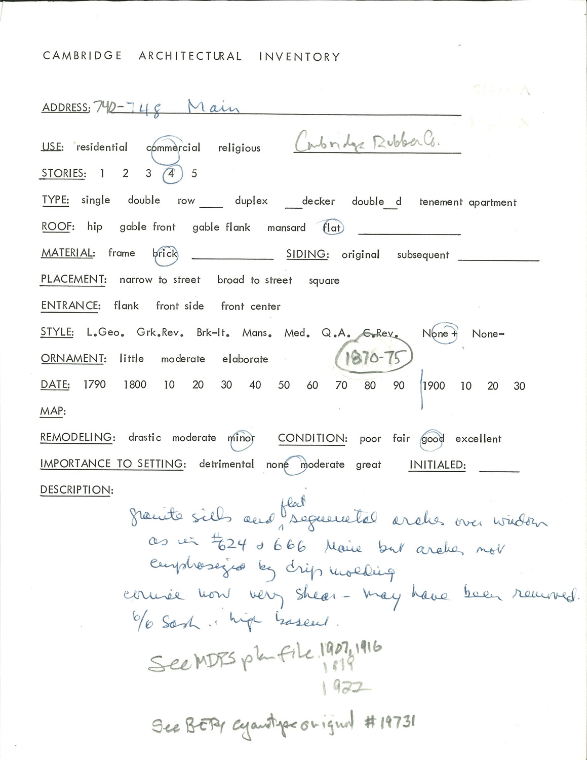 740-748 Main St - Architectural Inventory Form