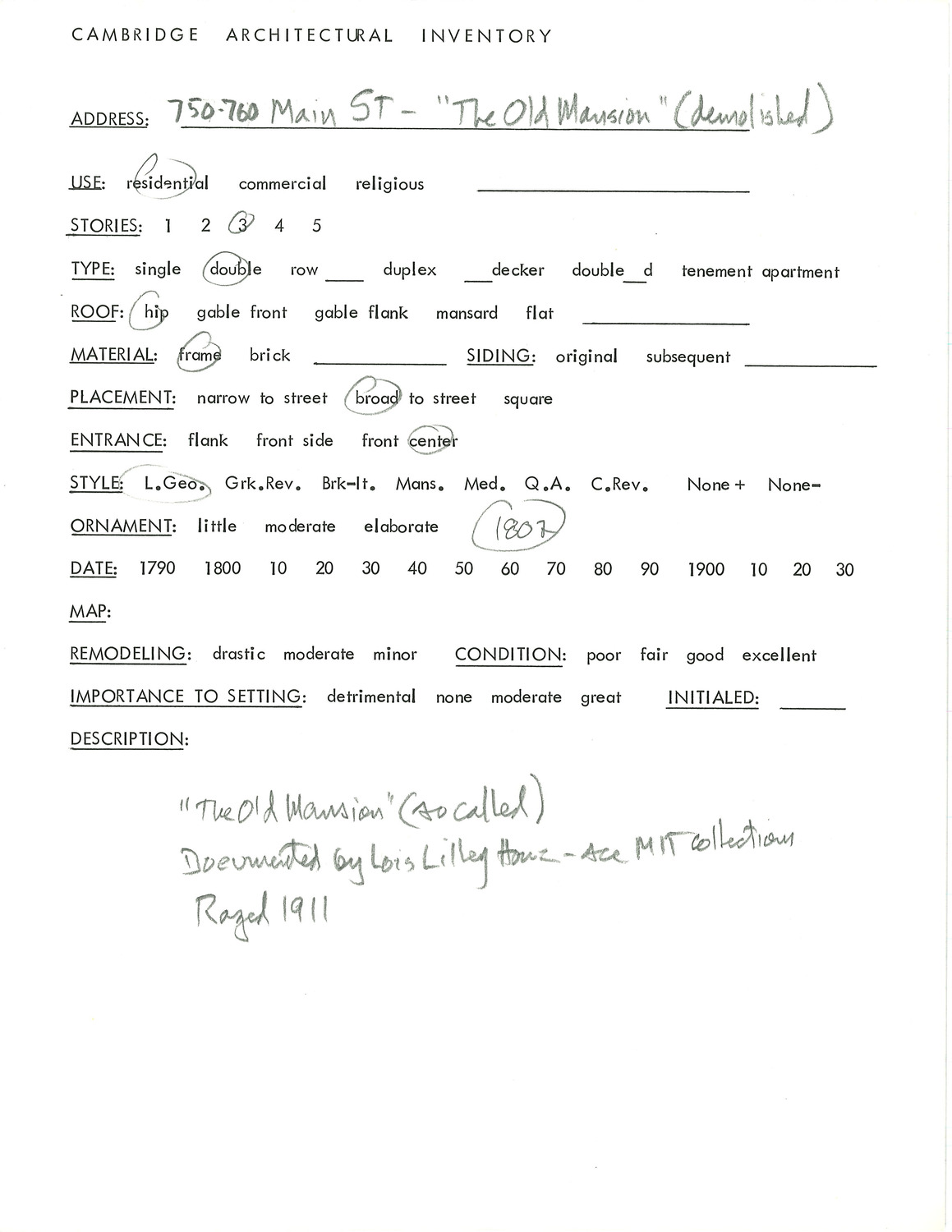 - Cambridge Historical Commission, Digital Architectural Survey and History.