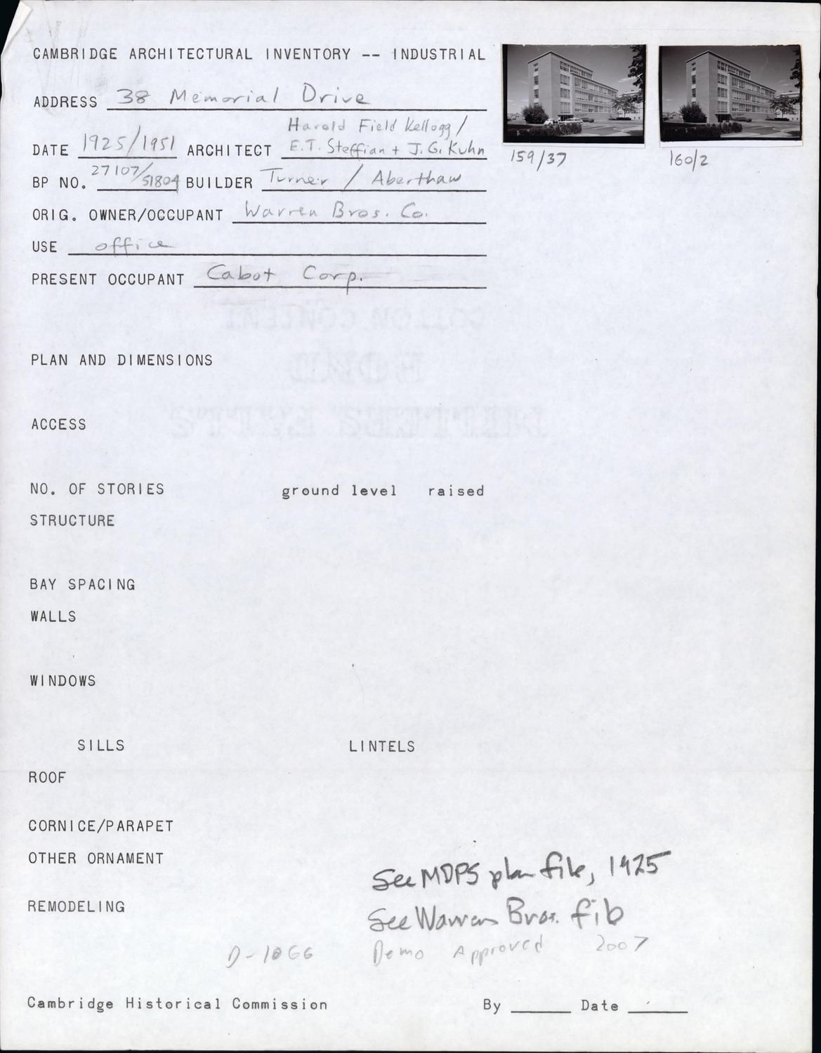38 Memorial Dr - Two Indeterminate Lines - Architectural Inventory Form