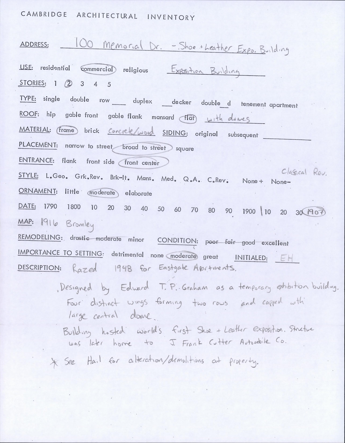 100 Memorial Dr - Shoe and Leather Exhibition Building - Architectural Inventory Form
