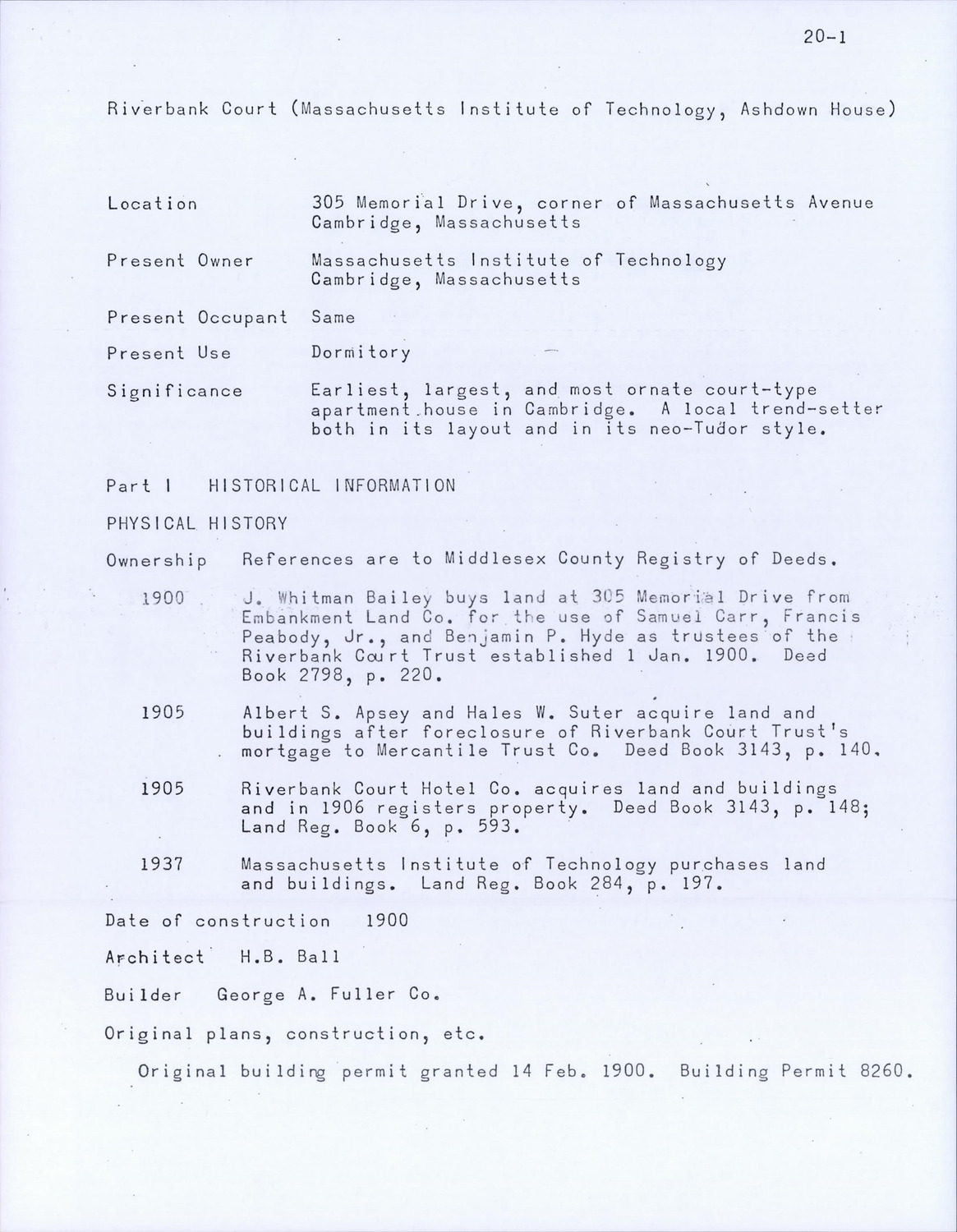 305 Memorial Dr - MIT Ashdown House - Supplemental Material