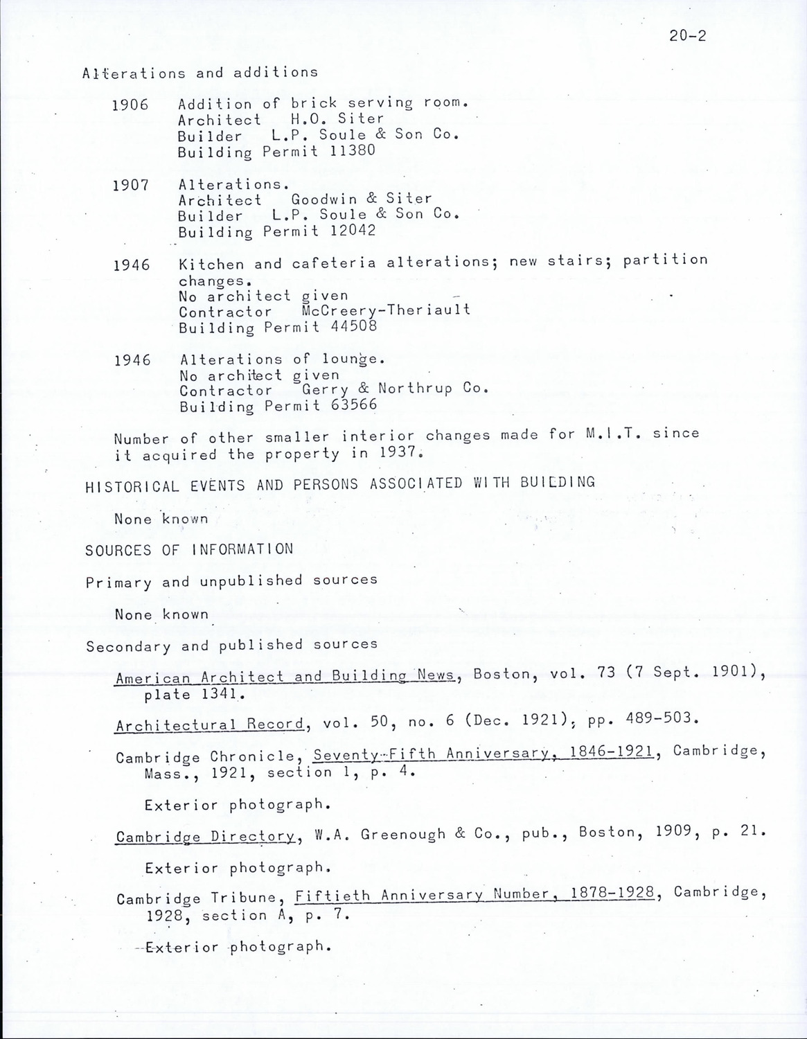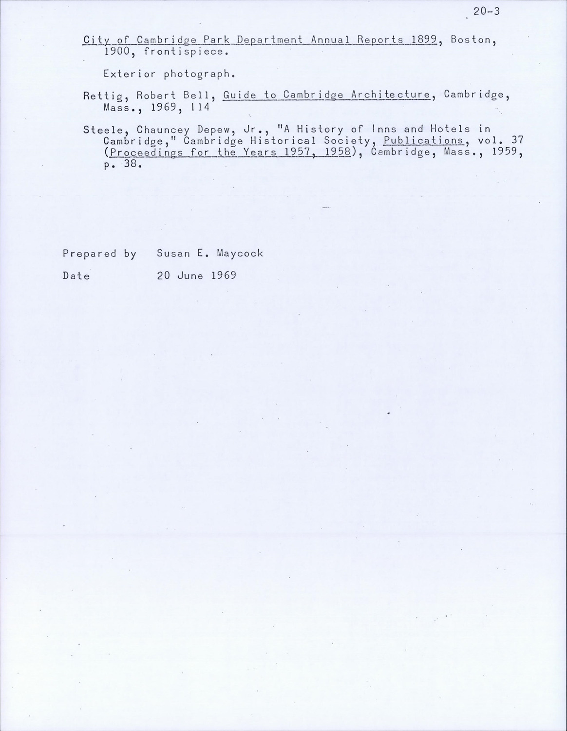 - Cambridge Historical Commission, Digital Architectural Survey and History.