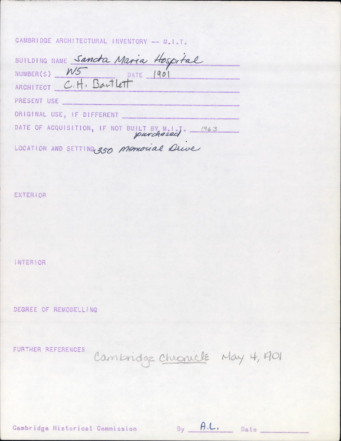 - Cambridge Historical Commission, Digital Architectural Survey and History.