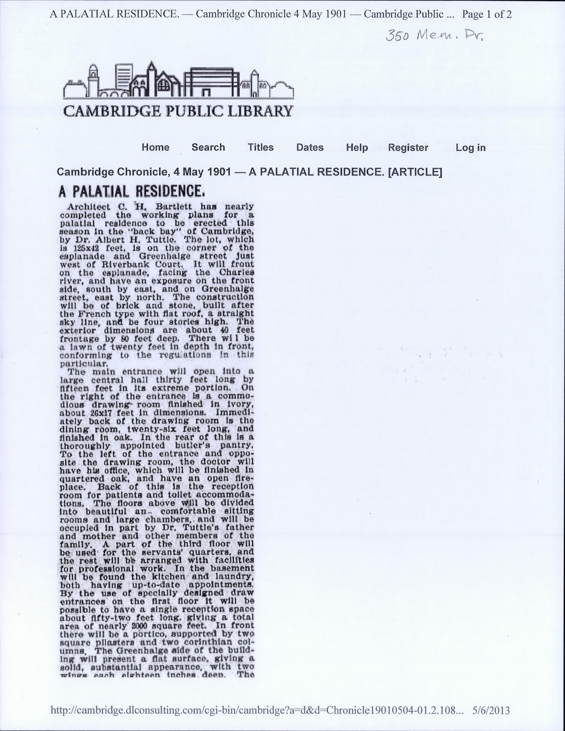 350 Memorial Dr - Published Material