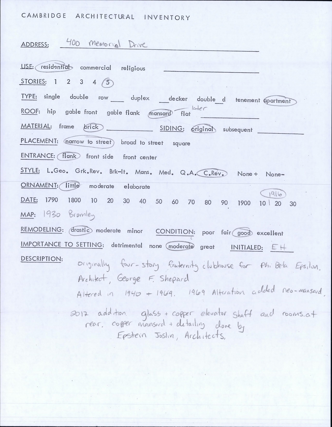 - Cambridge Historical Commission, Digital Architectural Survey and History.