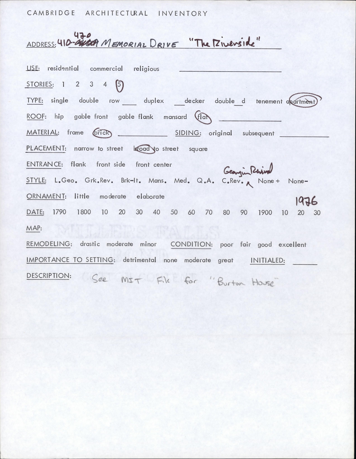 410-420 Memorial Dr - MIT Burton House - Architectural Inventory Form