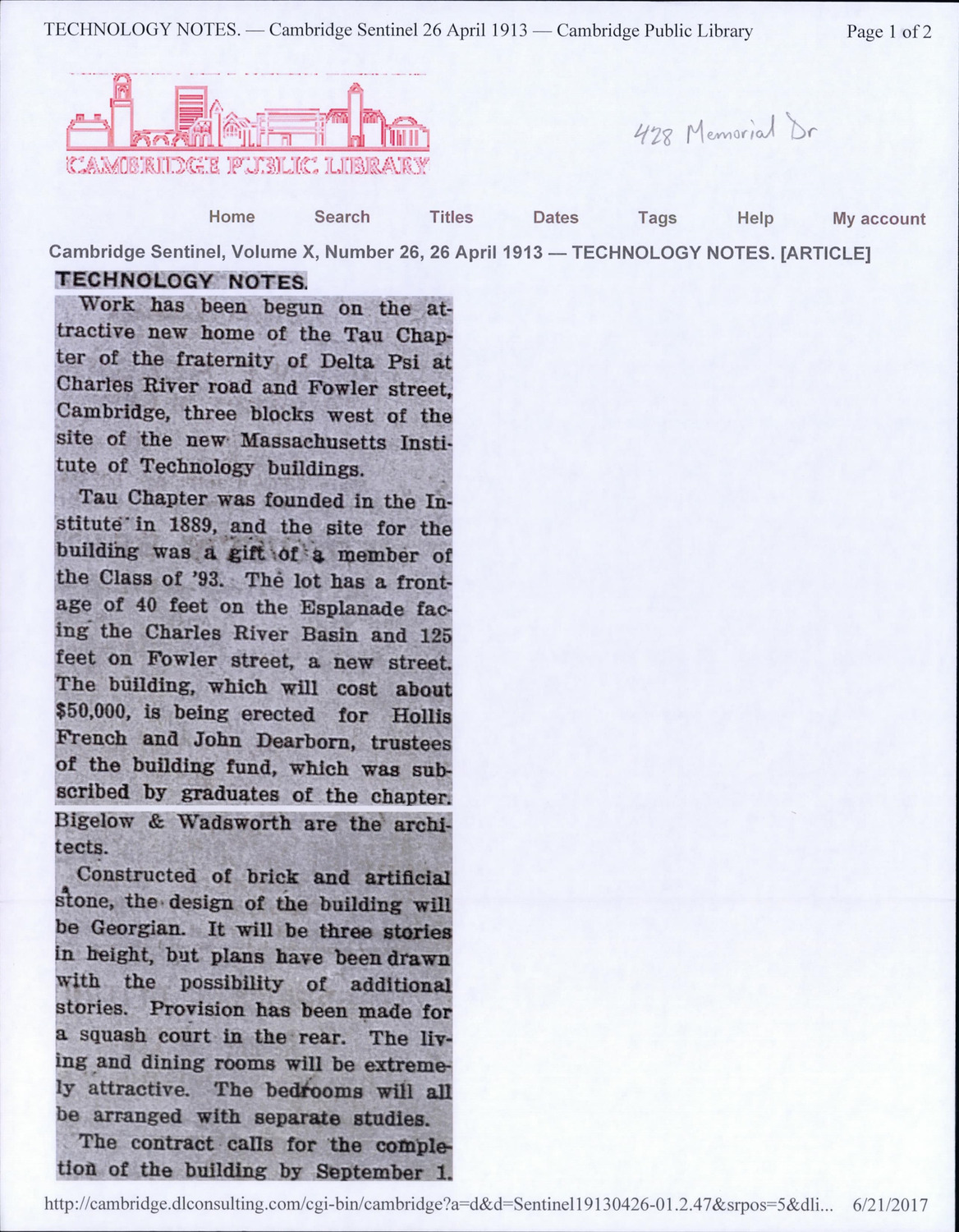 - Cambridge Historical Commission, Digital Architectural Survey and History.