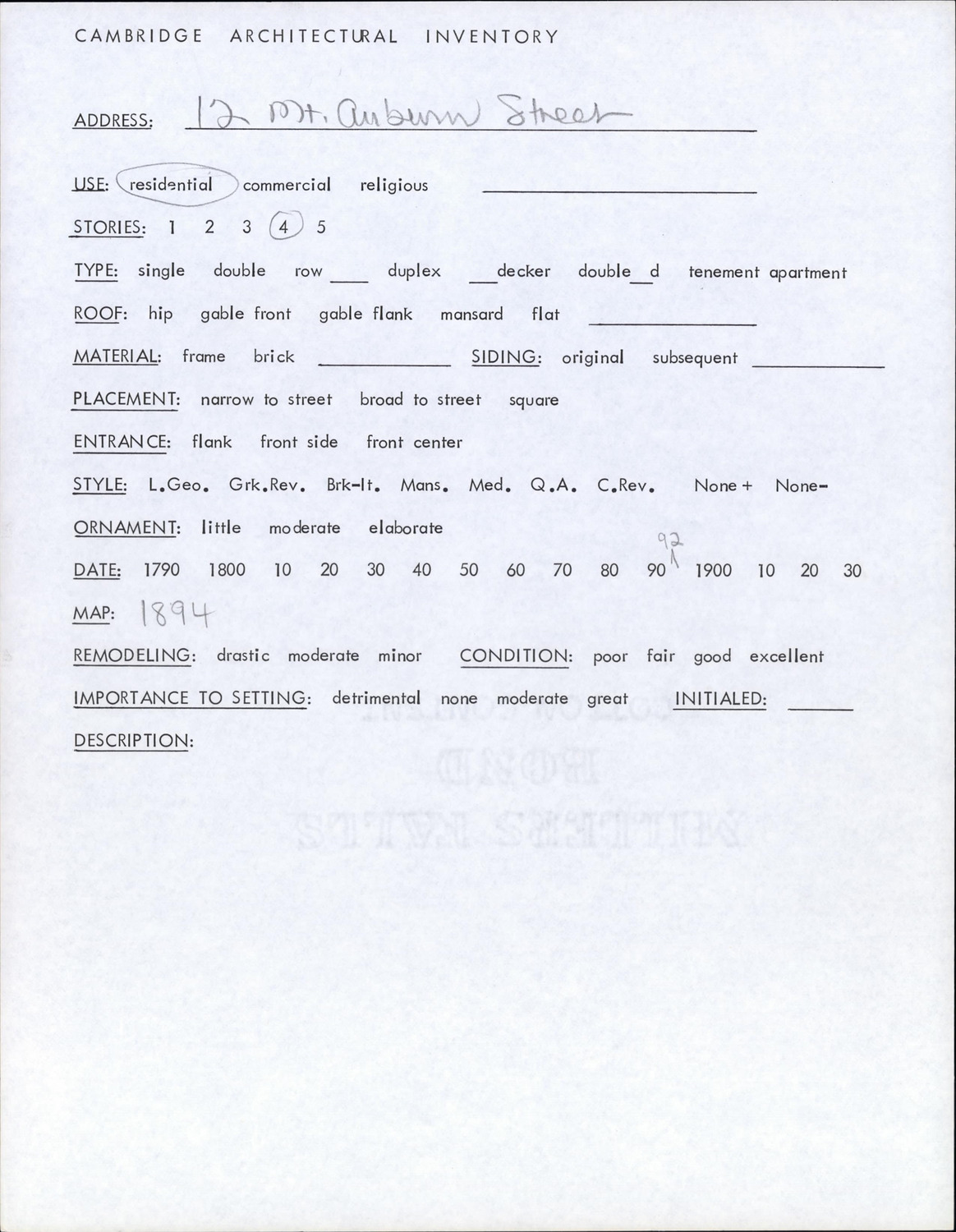 - Cambridge Historical Commission, Digital Architectural Survey and History.