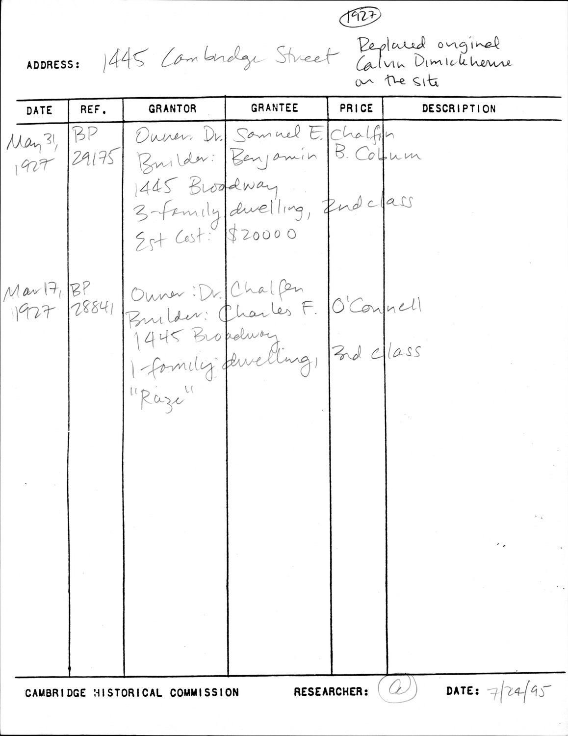 - Cambridge Historical Commission, Digital Architectural Survey and History.