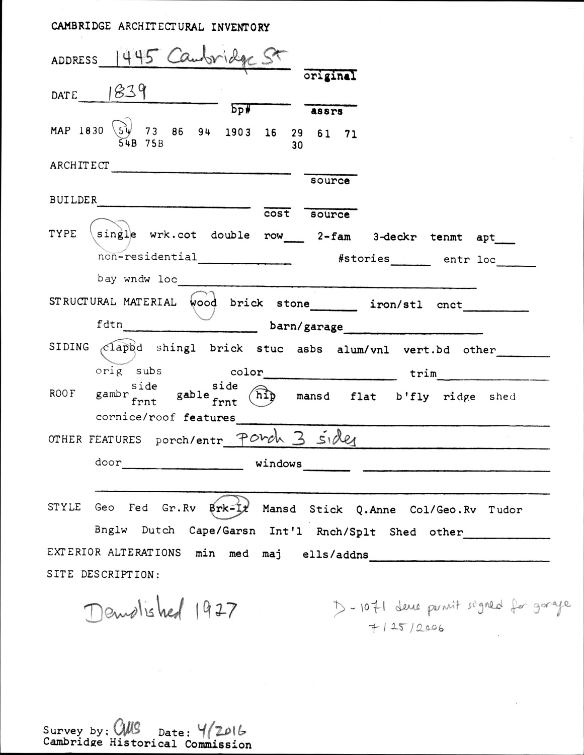 - Cambridge Historical Commission, Digital Architectural Survey and History.