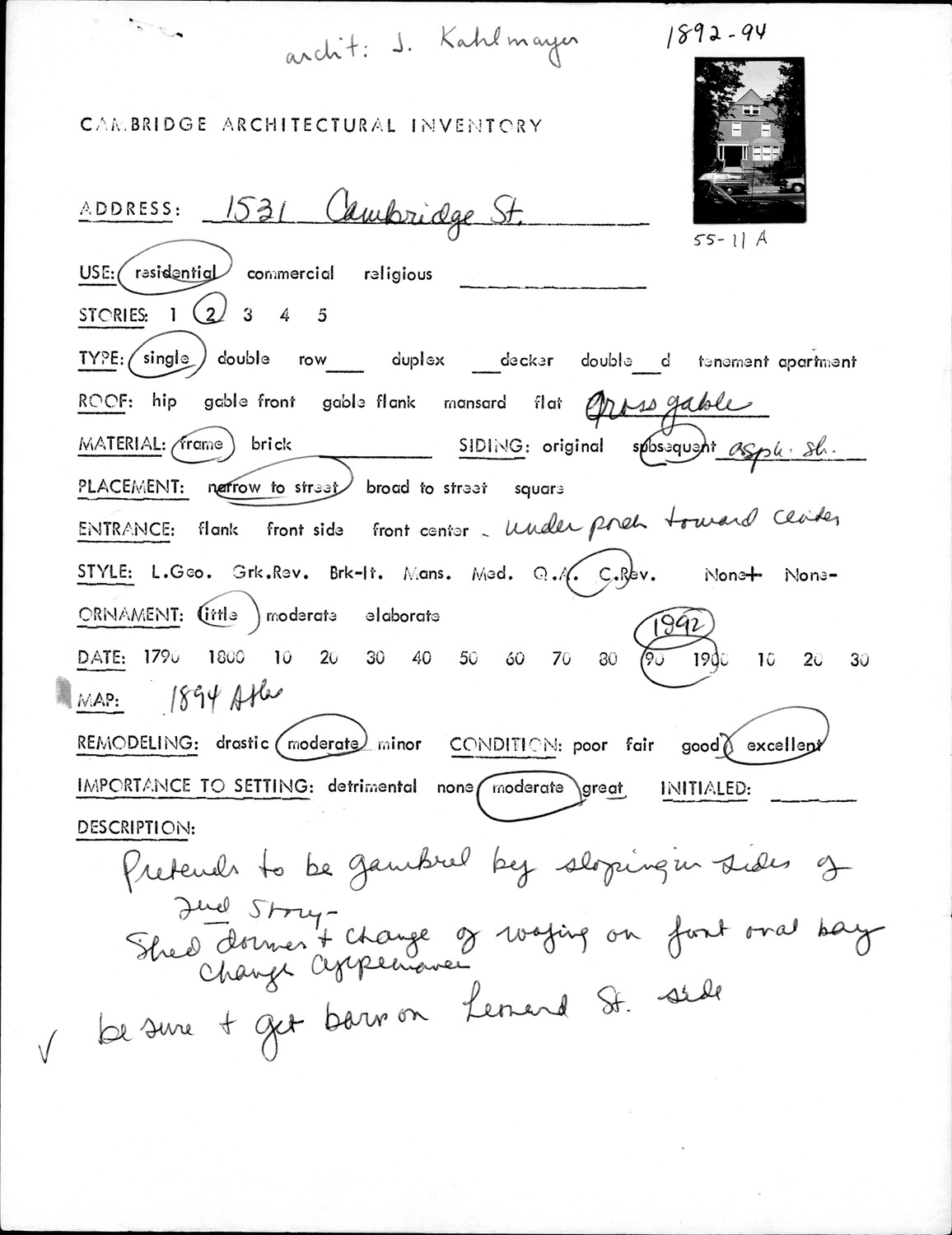 - Cambridge Historical Commission, Digital Architectural Survey and History.