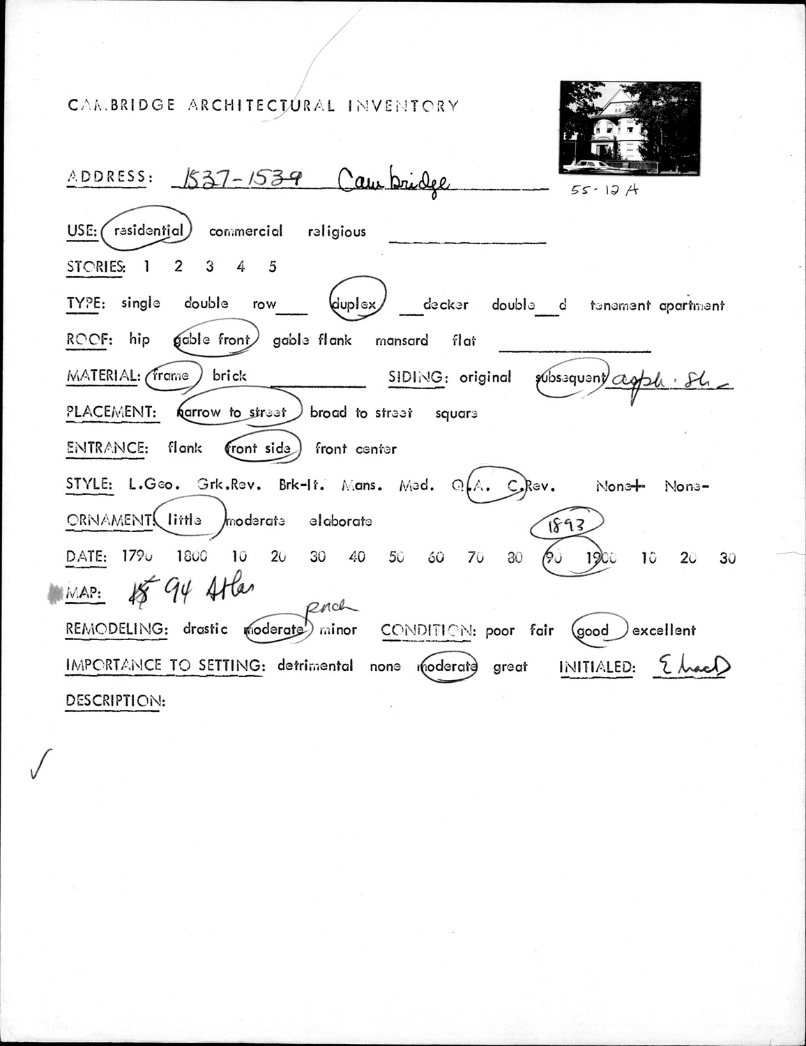 - Cambridge Historical Commission, Digital Architectural Survey and History.