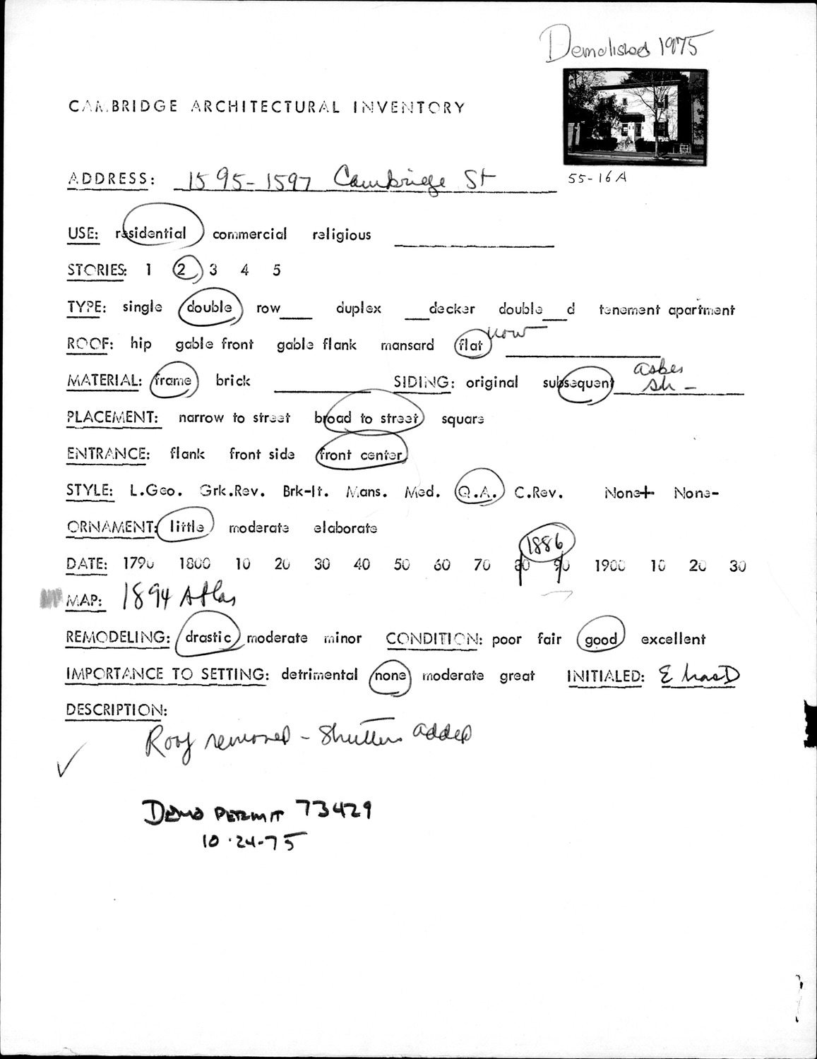 - Cambridge Historical Commission, Digital Architectural Survey and History.