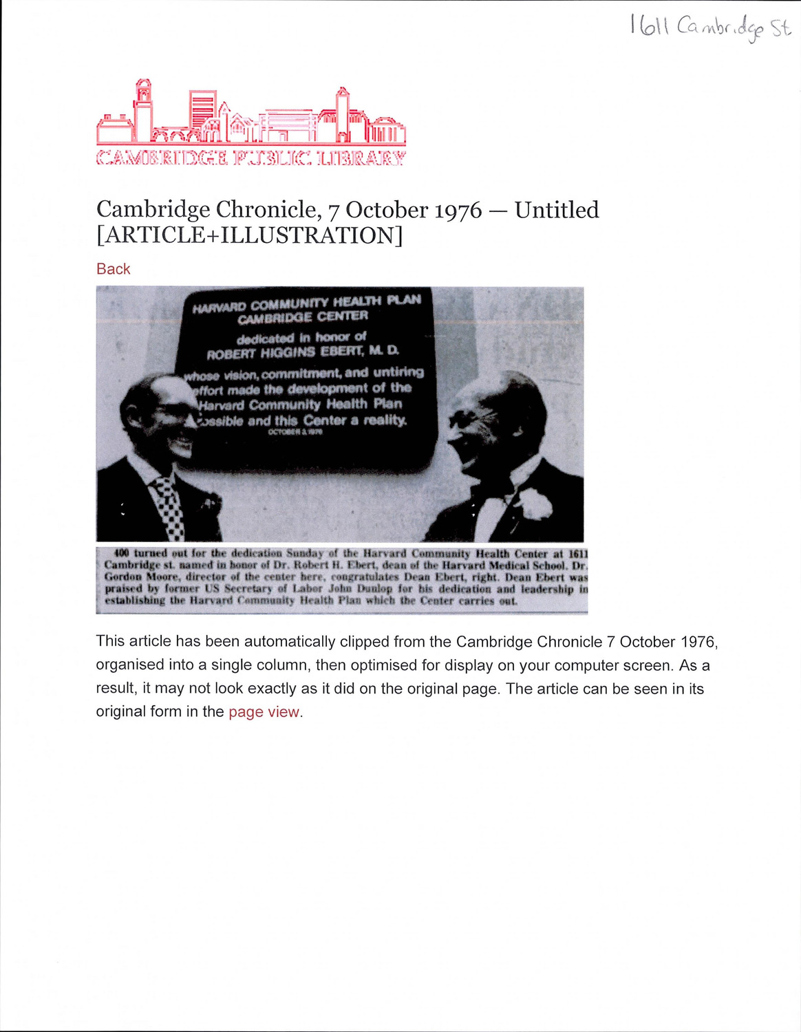 - Cambridge Historical Commission, Digital Architectural Survey and History.