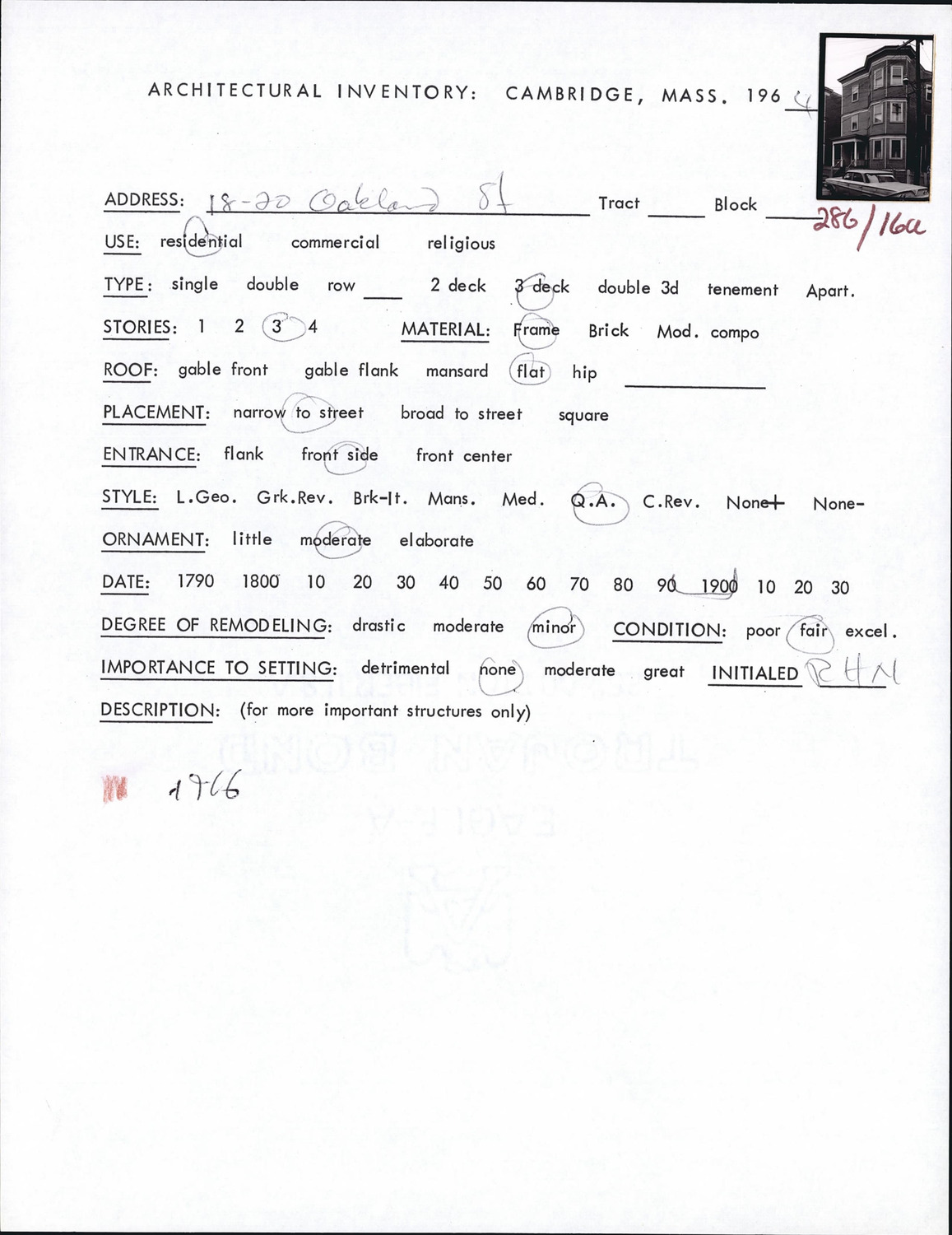- Cambridge Historical Commission, Digital Architectural Survey and History.
