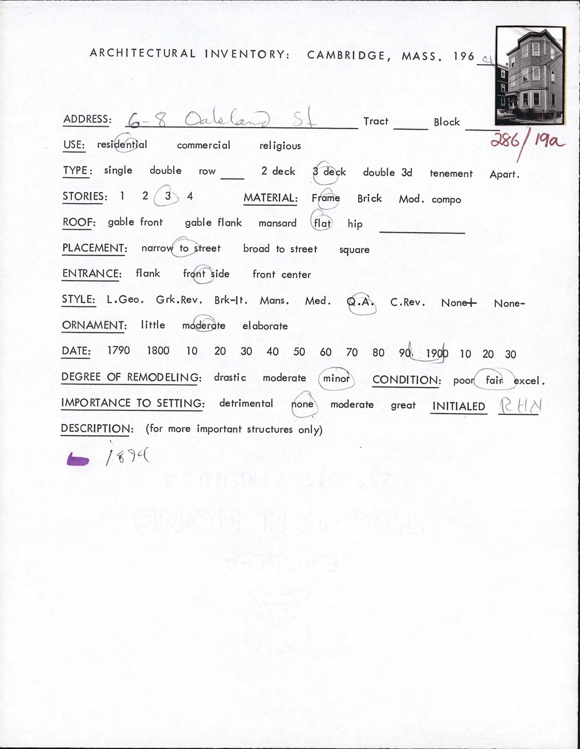 - Cambridge Historical Commission, Digital Architectural Survey and History.