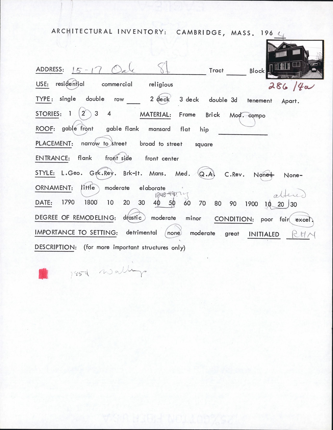 15-17 Oak St - Architectural Inventory Form