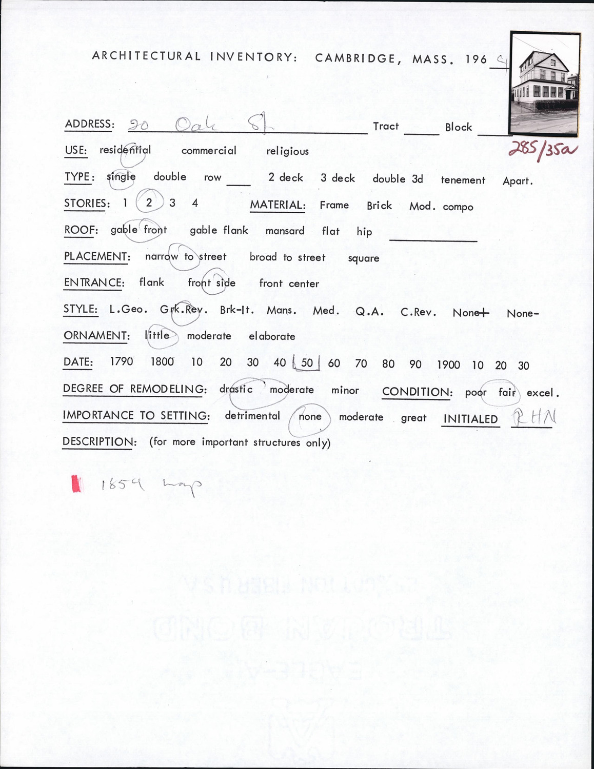 20 Oak St - Architectural Inventory Form