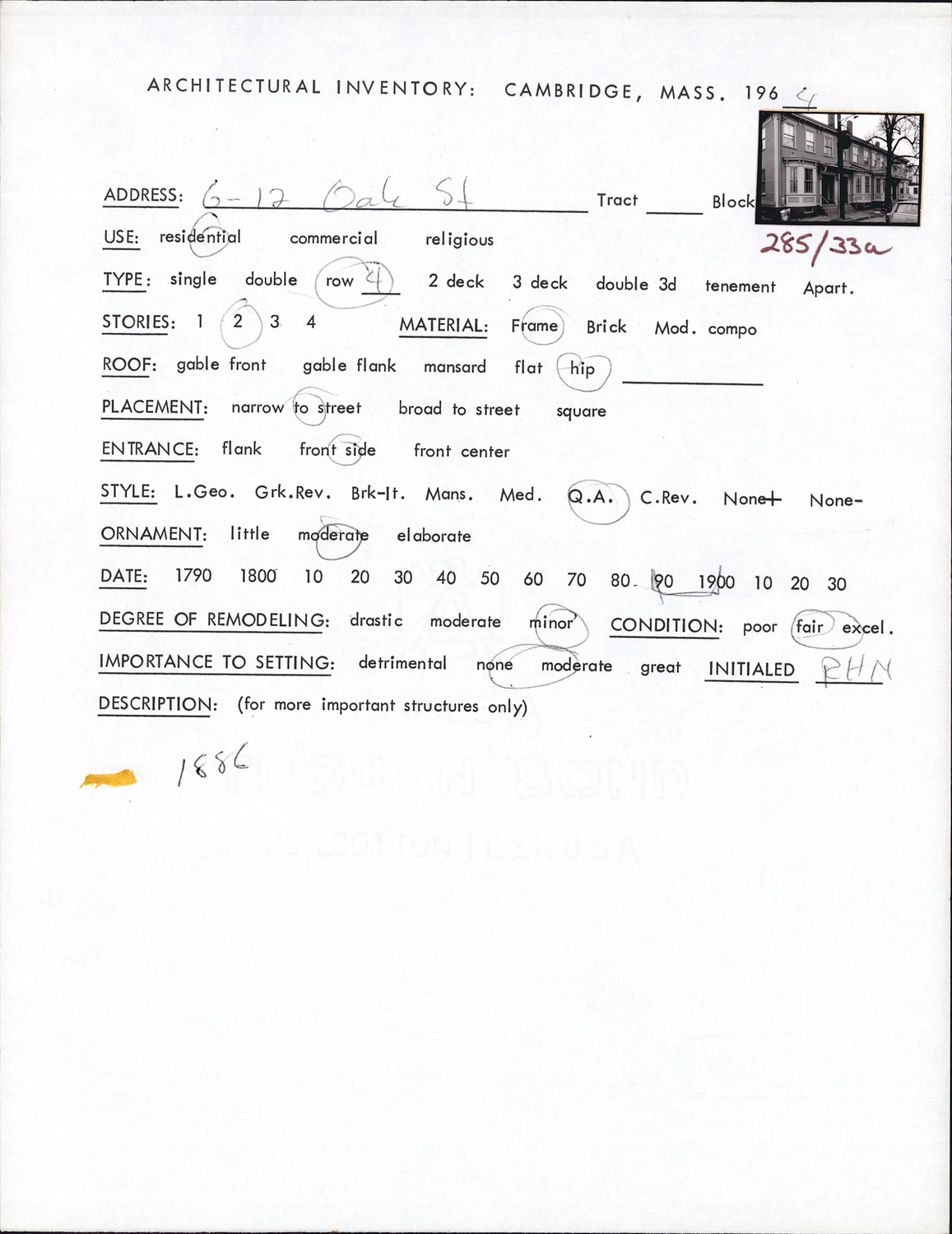 6-12 Oak St - Architectural Inventory Form