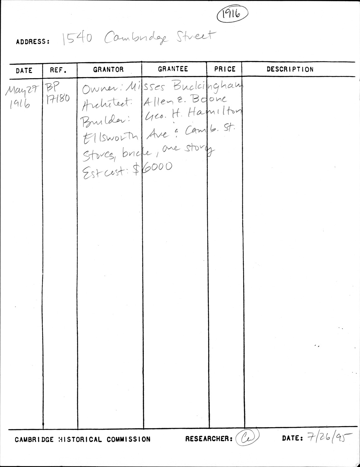 Cambridge Historical Commission, Digital Architectural Survey and History.