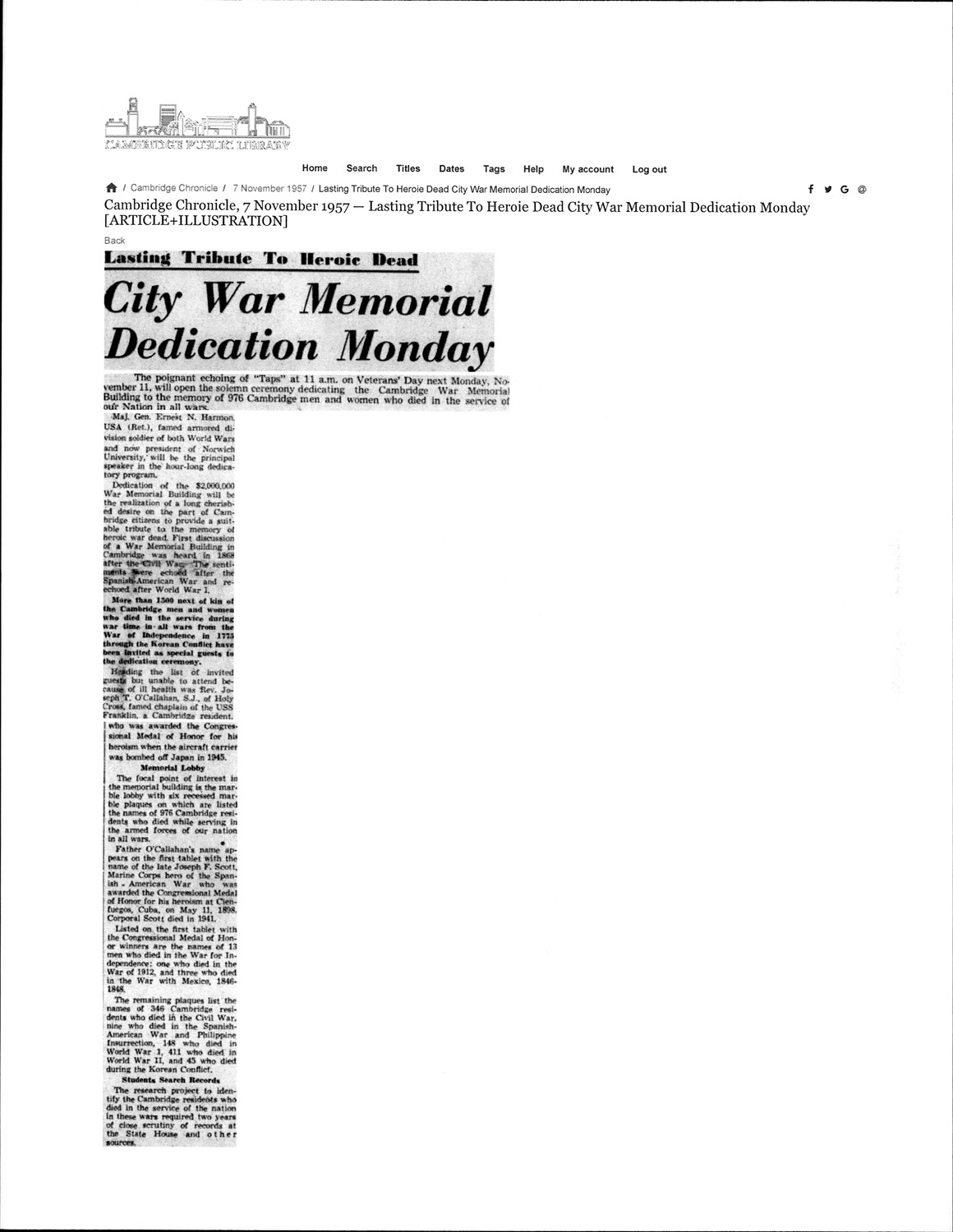 - Cambridge Historical Commission, Digital Architectural Survey and History.