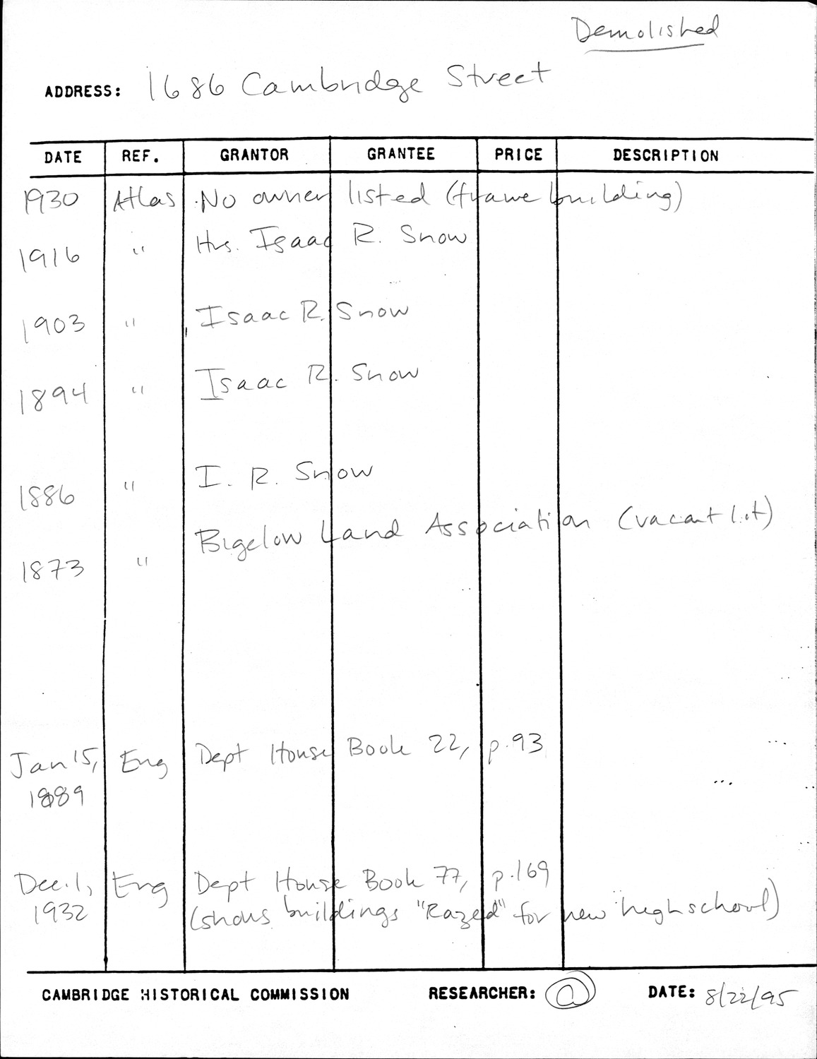 - Cambridge Historical Commission, Digital Architectural Survey and History.