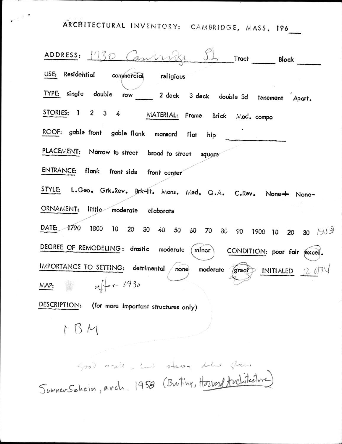 - Cambridge Historical Commission, Digital Architectural Survey and History.