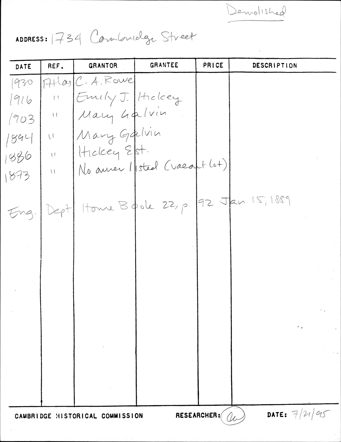 - Cambridge Historical Commission, Digital Architectural Survey and History.