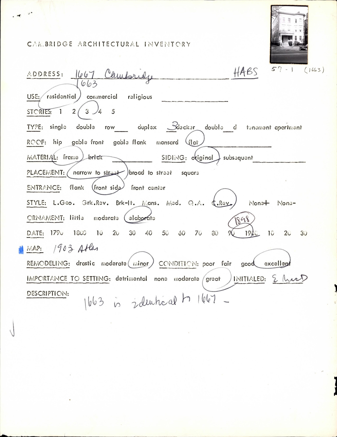 1663 Cambridge St - Architectural Inventory Form