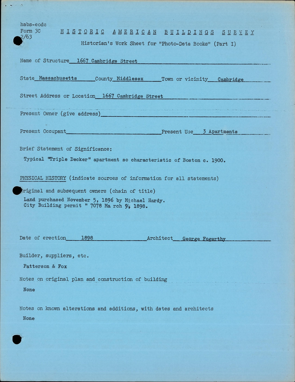 - Cambridge Historical Commission, Digital Architectural Survey and History.