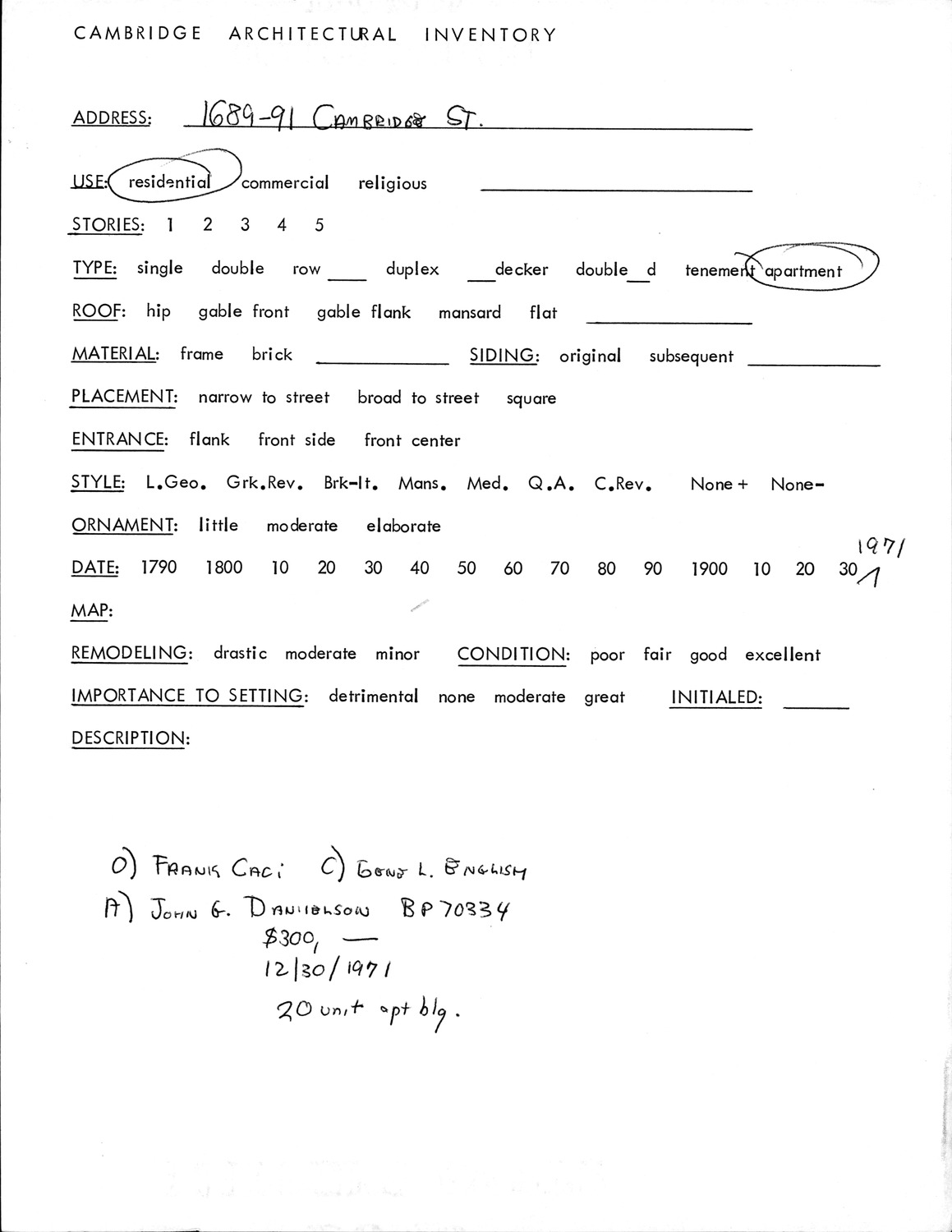 1689-1691 Cambridge St - Architectural Inventory Form