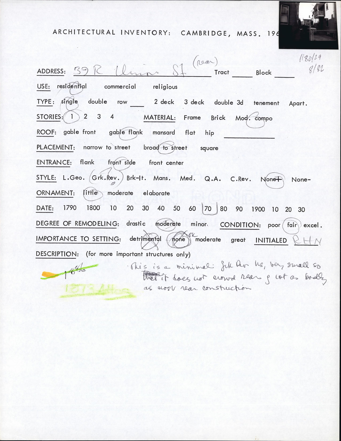 39R Union St - Architectural Inventory Form