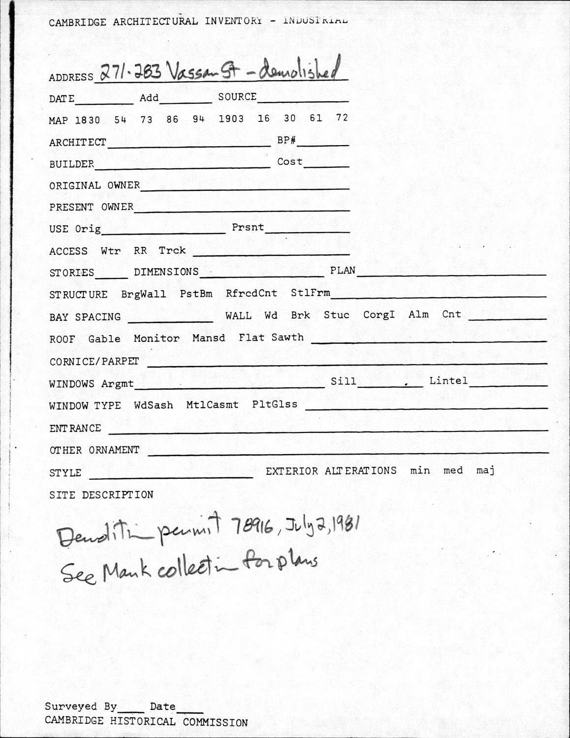- Cambridge Historical Commission, Digital Architectural Survey and History.