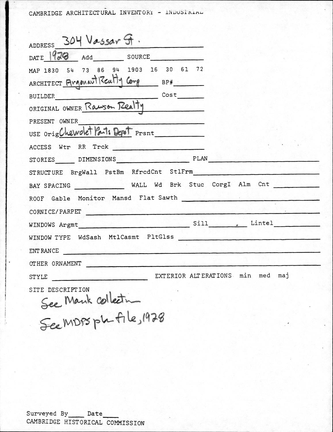 - Cambridge Historical Commission, Digital Architectural Survey and History.