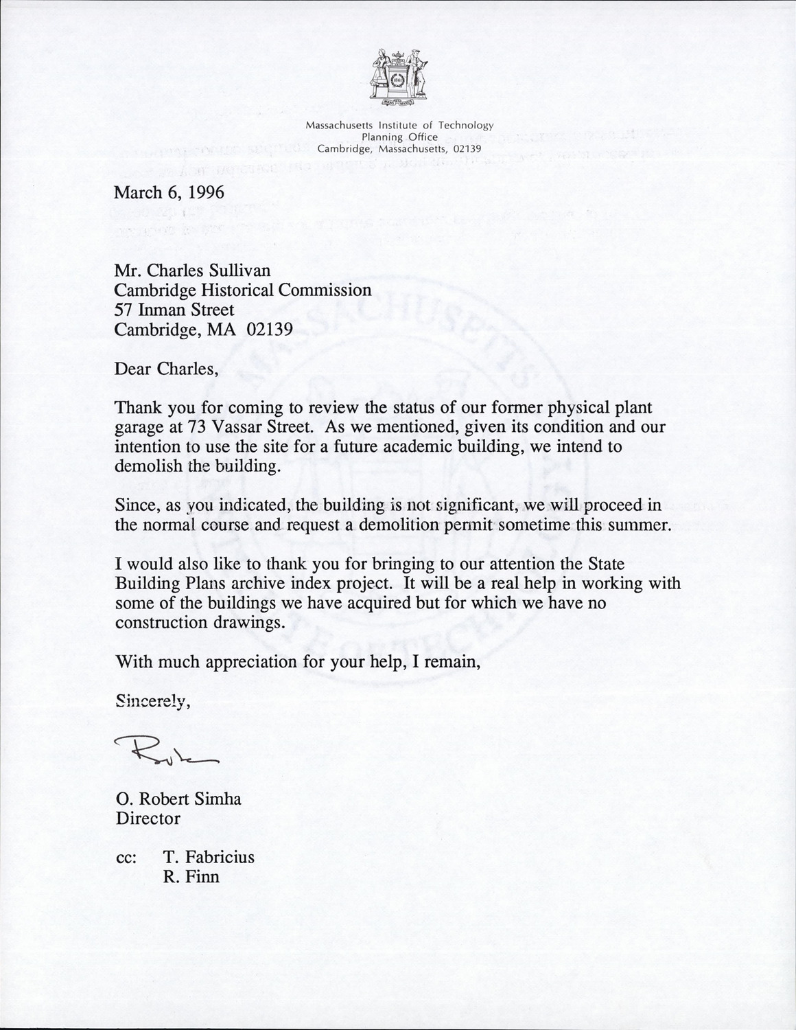 73-83 Vassar St - Correspondence