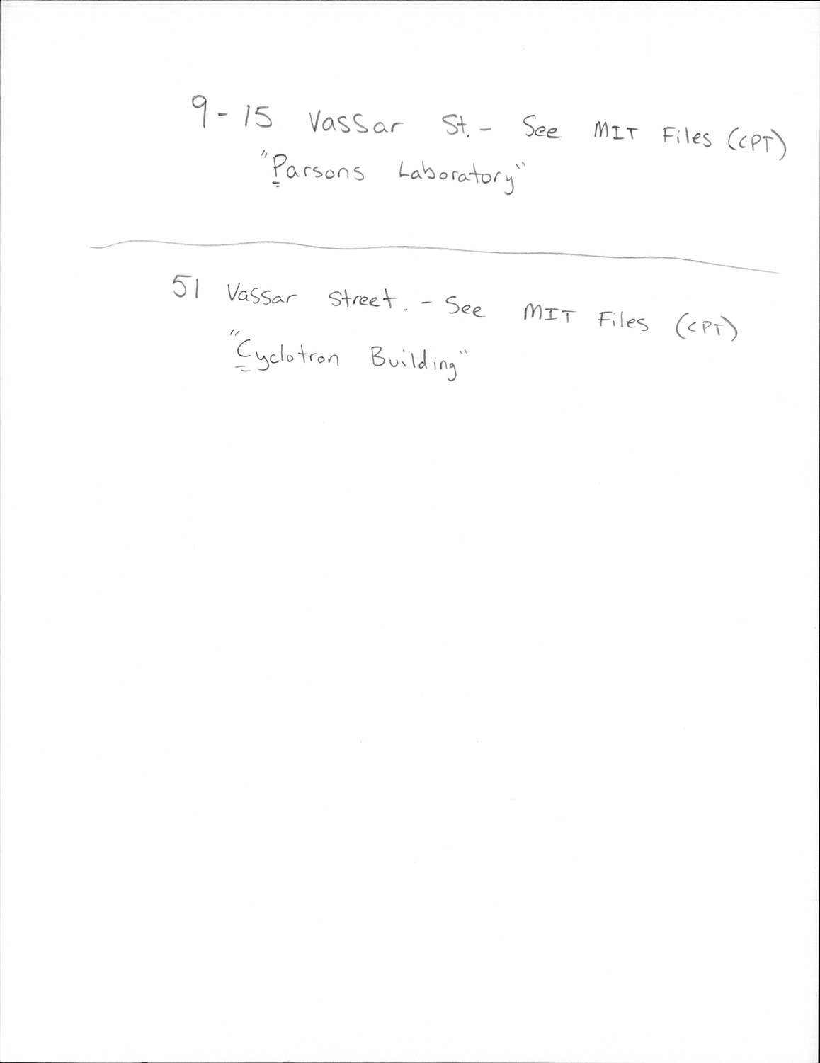 9 Vassar St - MIT Bldg 48 - Parsons Lab - Research Notes