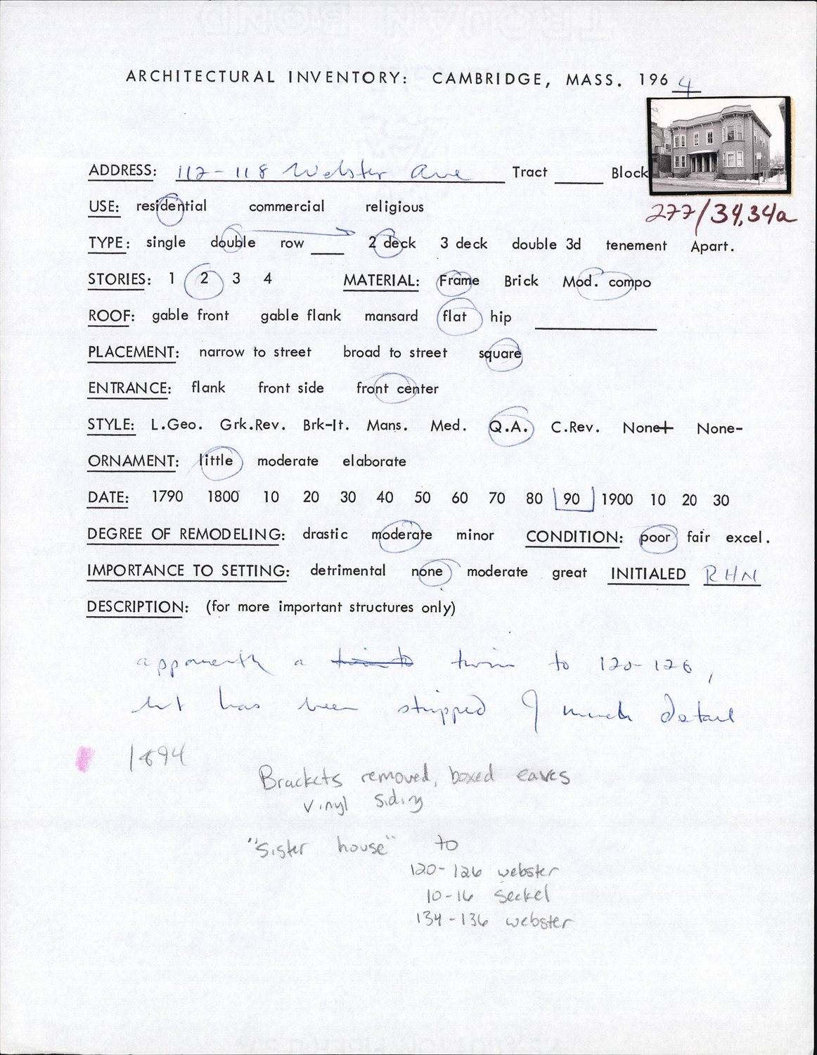 112-118 Webster Ave - Architectural Inventory Form