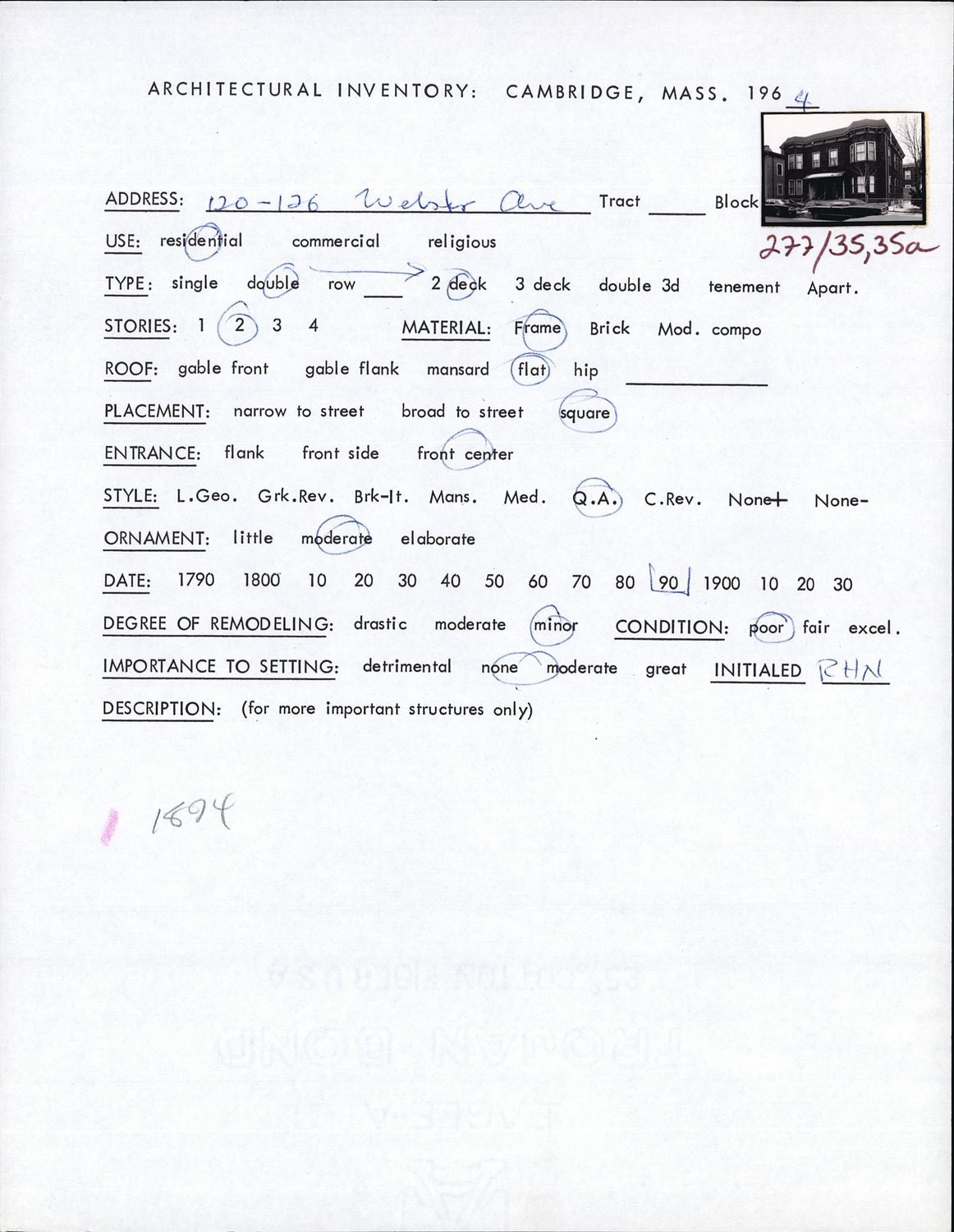 120-126 Webster Ave - Architectural Inventory Form