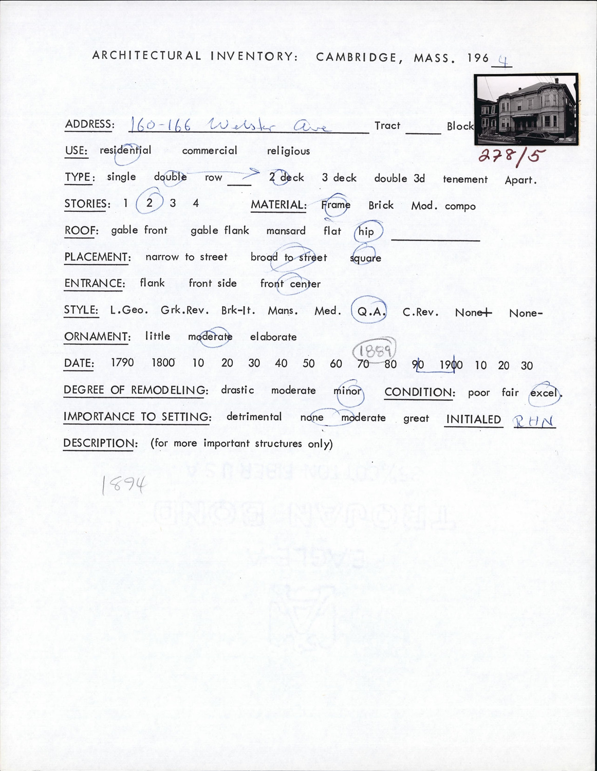 160-166 Webster Ave - Architectural Inventory Form