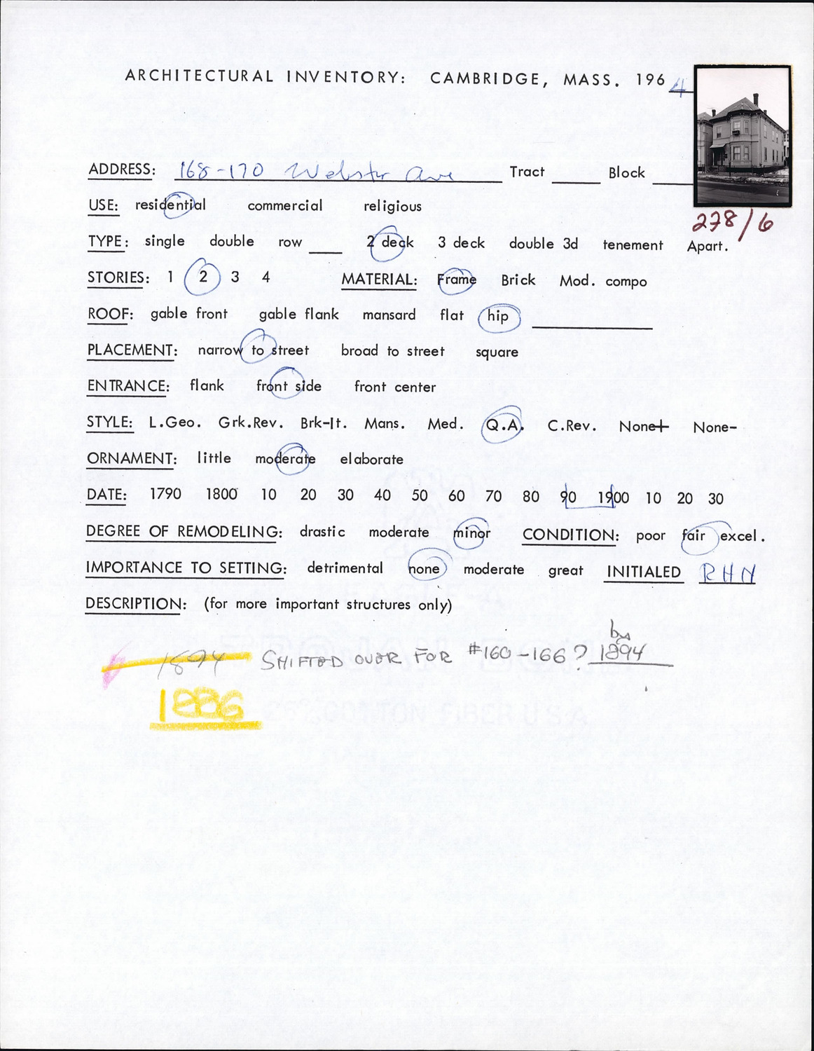 168-170 Webster Ave - Architectural Inventory Form