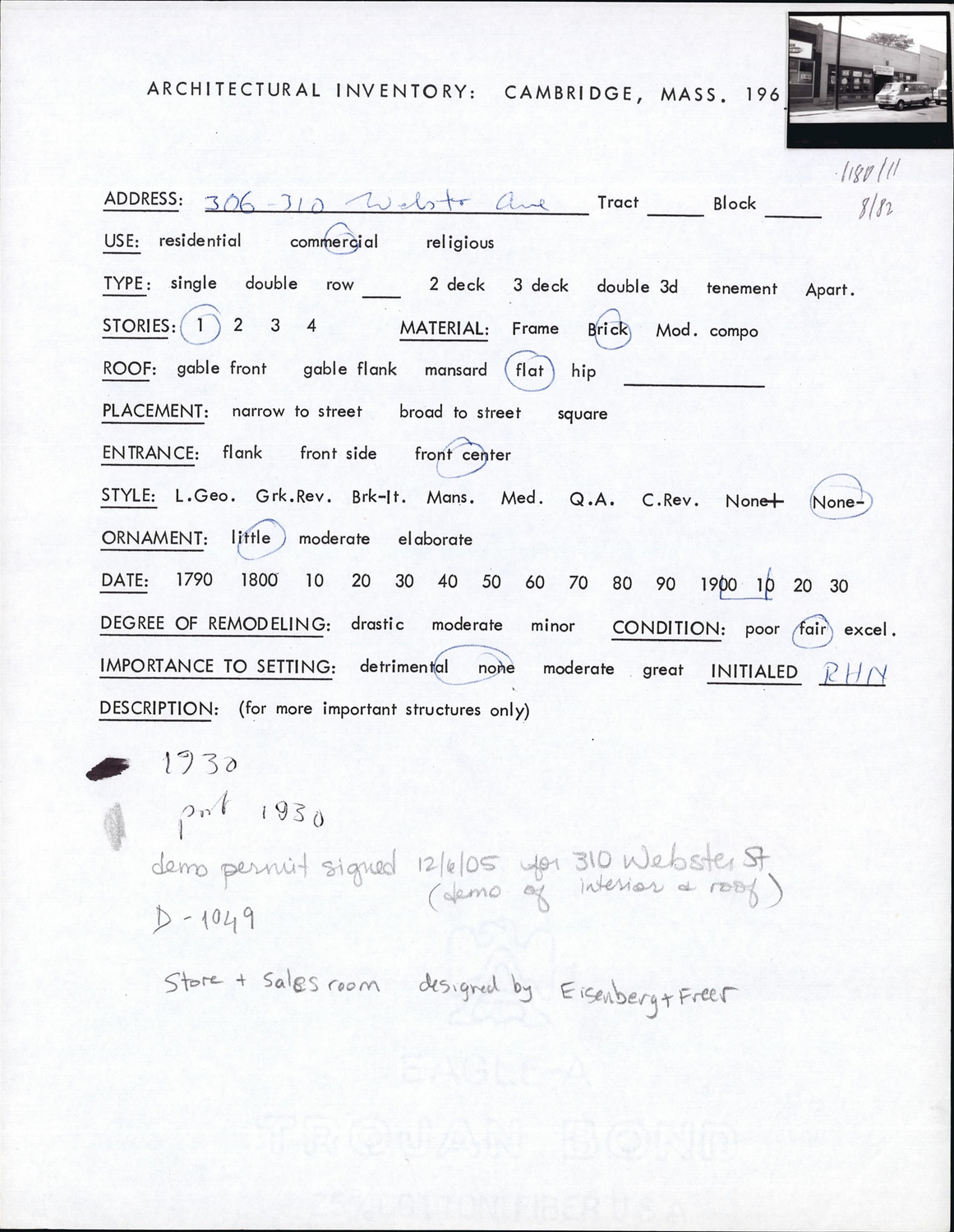 - Cambridge Historical Commission, Digital Architectural Survey and History.