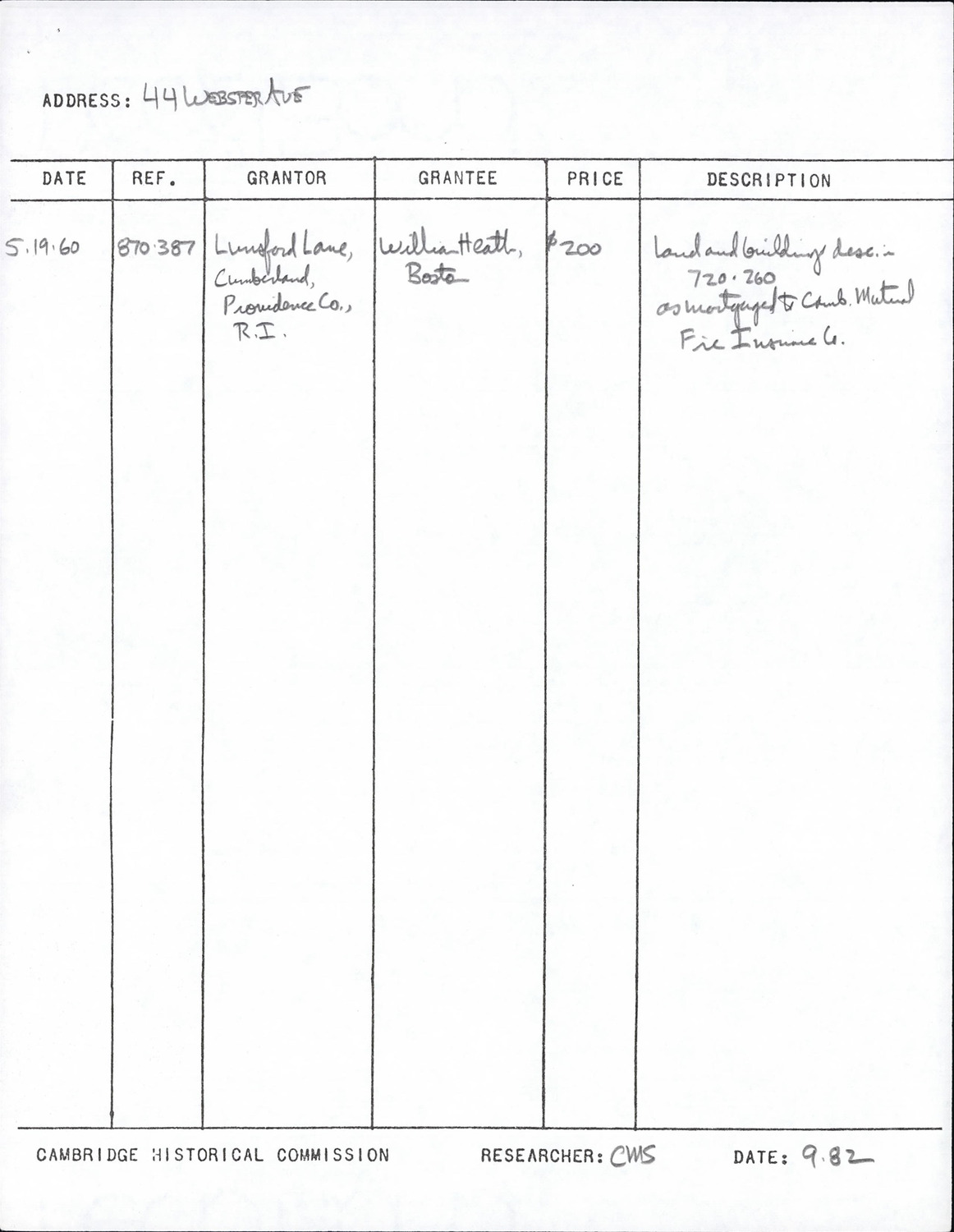 44 Webster Ave - Research Form