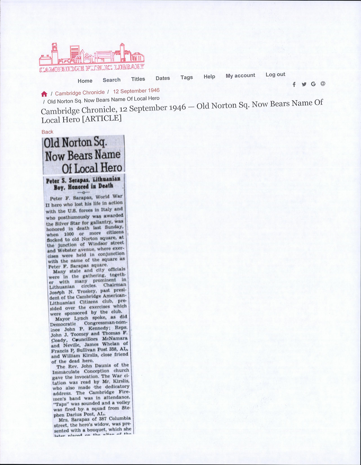 - Cambridge Historical Commission, Digital Architectural Survey and History.