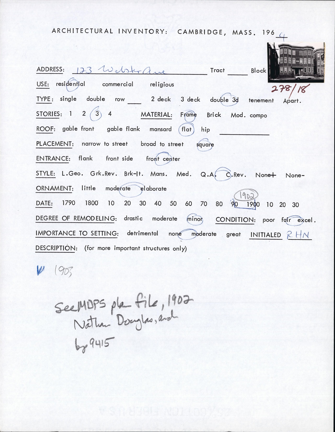 - Cambridge Historical Commission, Digital Architectural Survey and History.