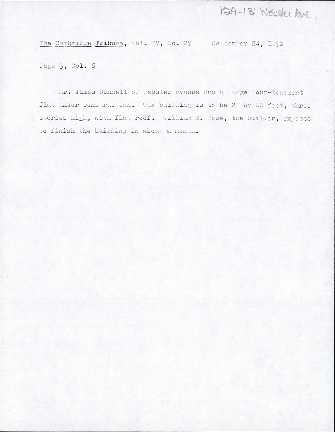 129-131 Webster Ave - Published Material