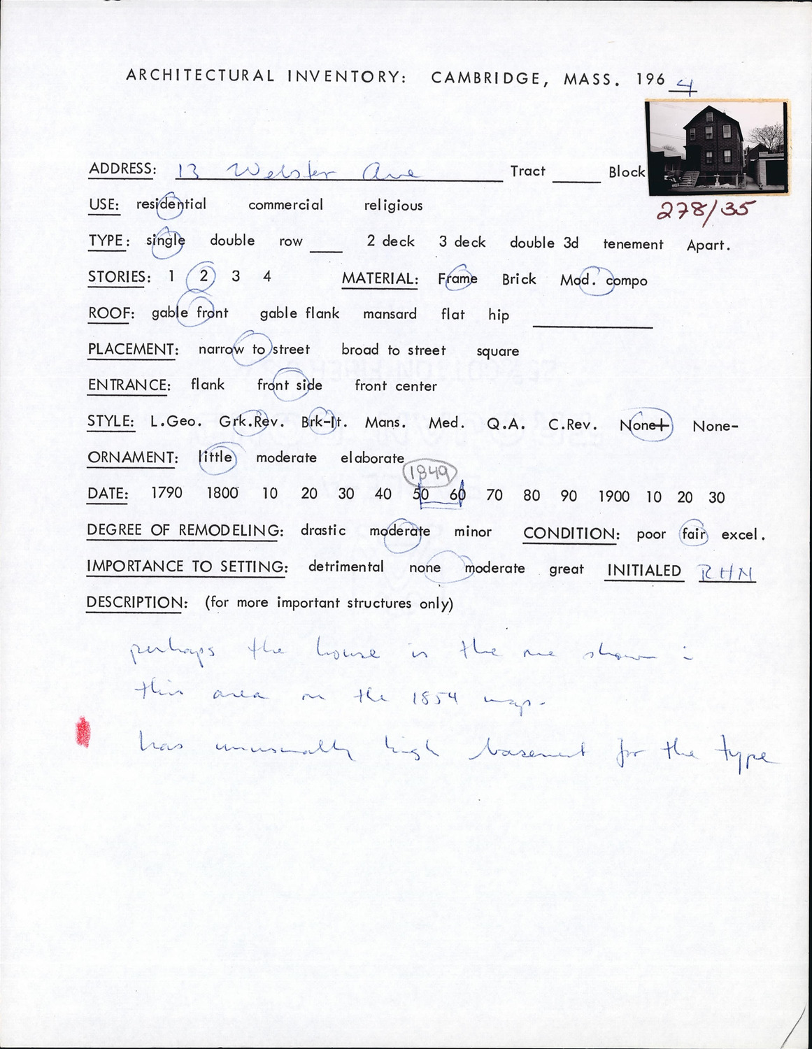 - Cambridge Historical Commission, Digital Architectural Survey and History.