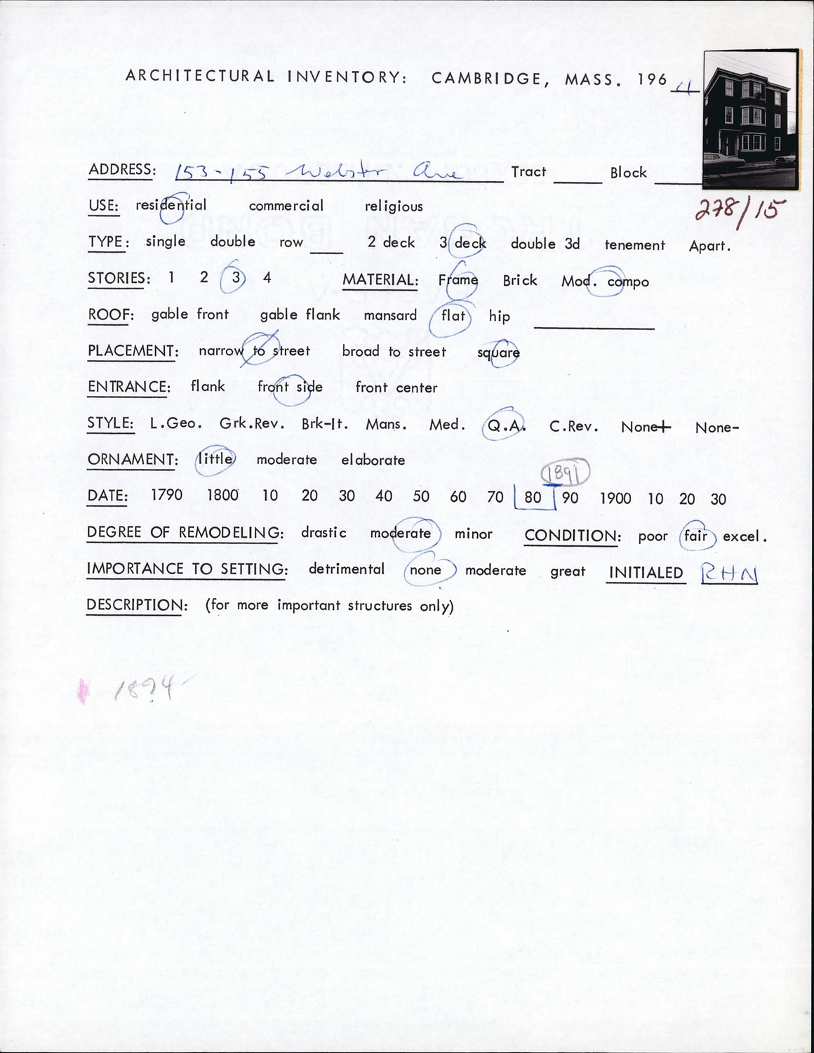 - Cambridge Historical Commission, Digital Architectural Survey and History.