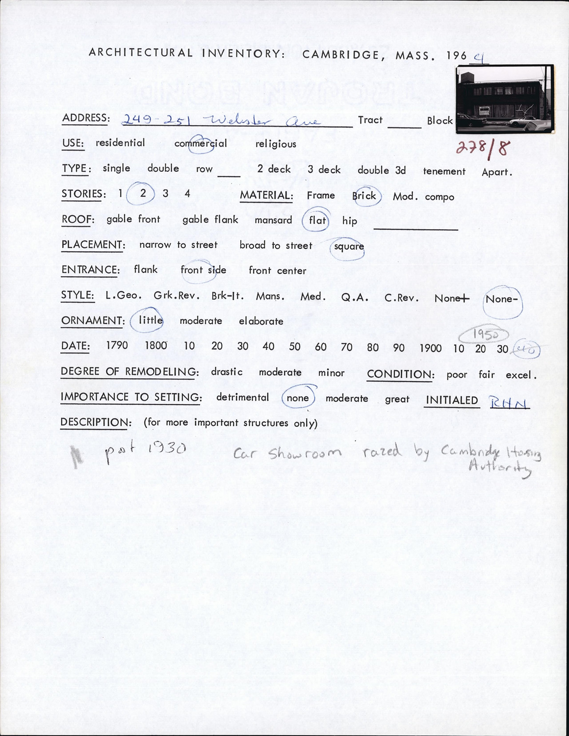 - Cambridge Historical Commission, Digital Architectural Survey and History.