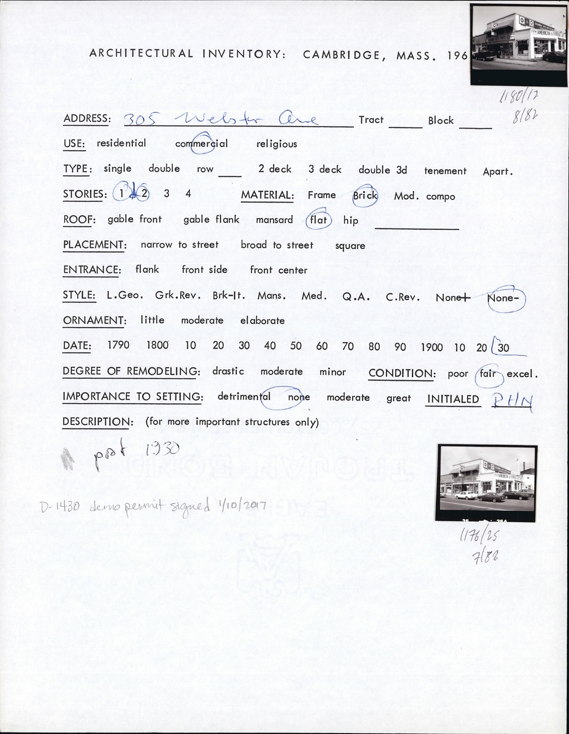 305 Webster Ave - Architectural Inventory Form
